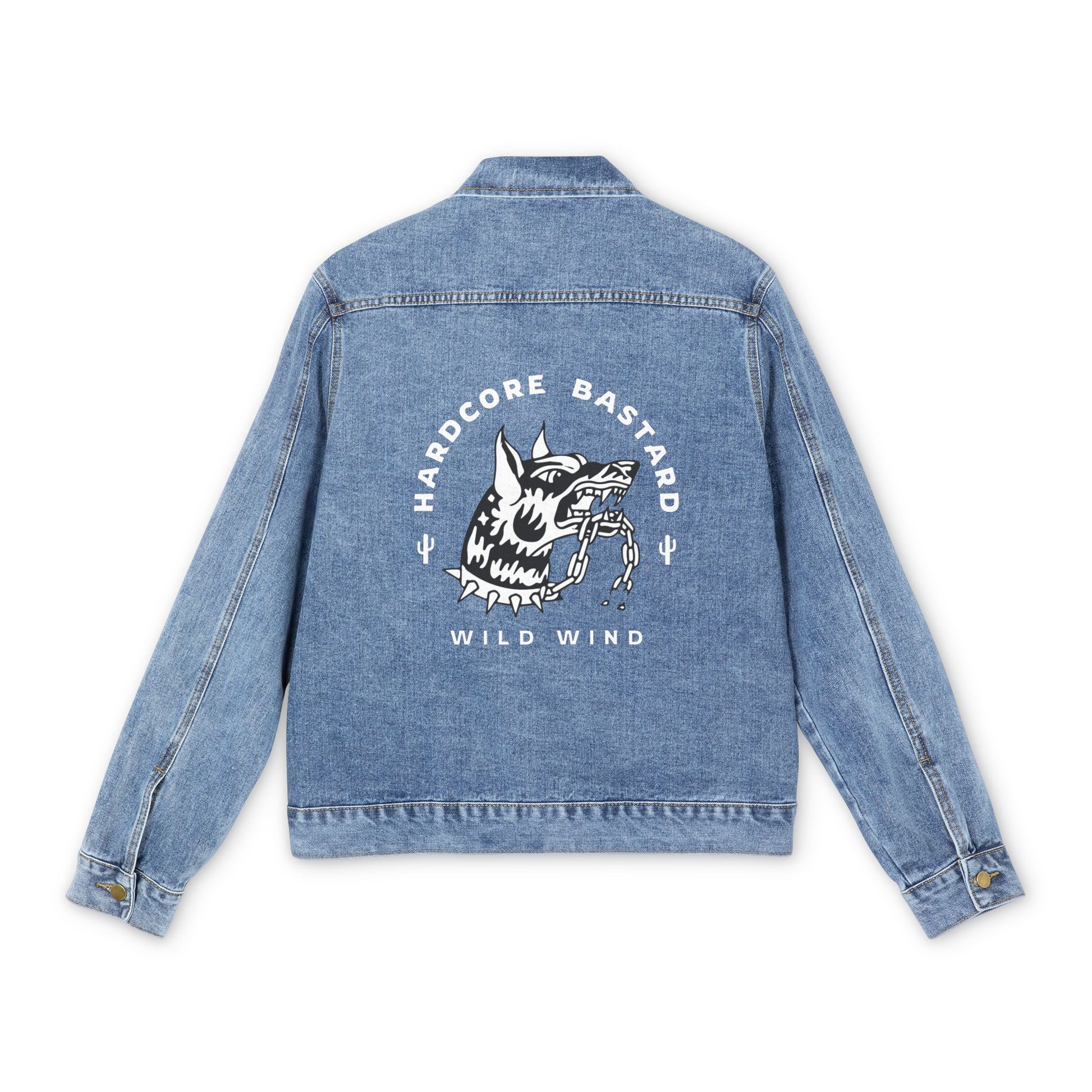 Denim jacket featuring a fierce dog breaking free from its chains, paired with “Hardcore Bastard” in bold American traditional style. Built for those who don’t obey and never stay caged.